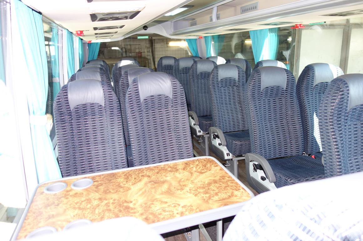 Neben unserem Fahrer finden noch zwei Reiseleiter Platz. Auf diesen Plätzen wird vor allem auch die großzügige Beinfreiheit gelobt.