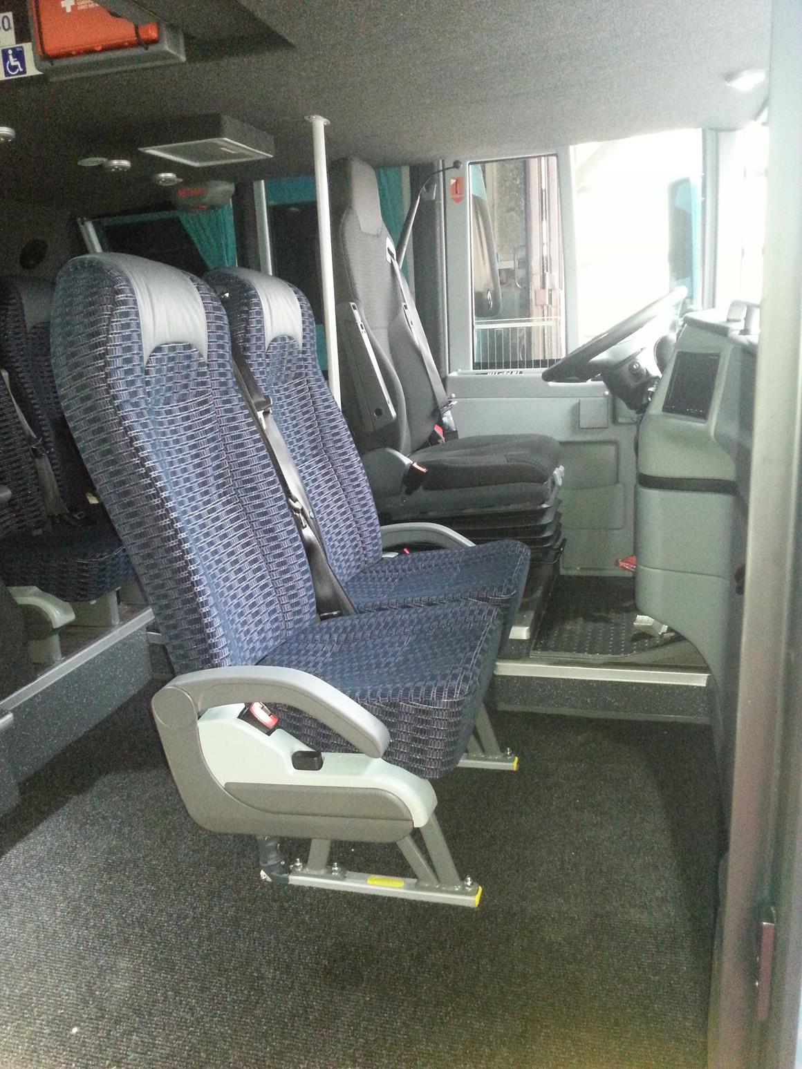 3 Sitze direkt hinter unserem Busfahrer. Diese sind sehr geeignet für Personen mit Gehbehinderung, da diese ohne Treppenstufen zu erreichen sind.